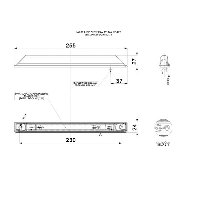 Rdeča pozicijska luč je narejena iz visokokakovstnih lediod in je primerna za označitev tovornega vozila, prikolice ali dostavnih vozil. Pozicijska luč je neprodušno zaprta, priklop luči s kablom na 12V ali 24V napeljavo.